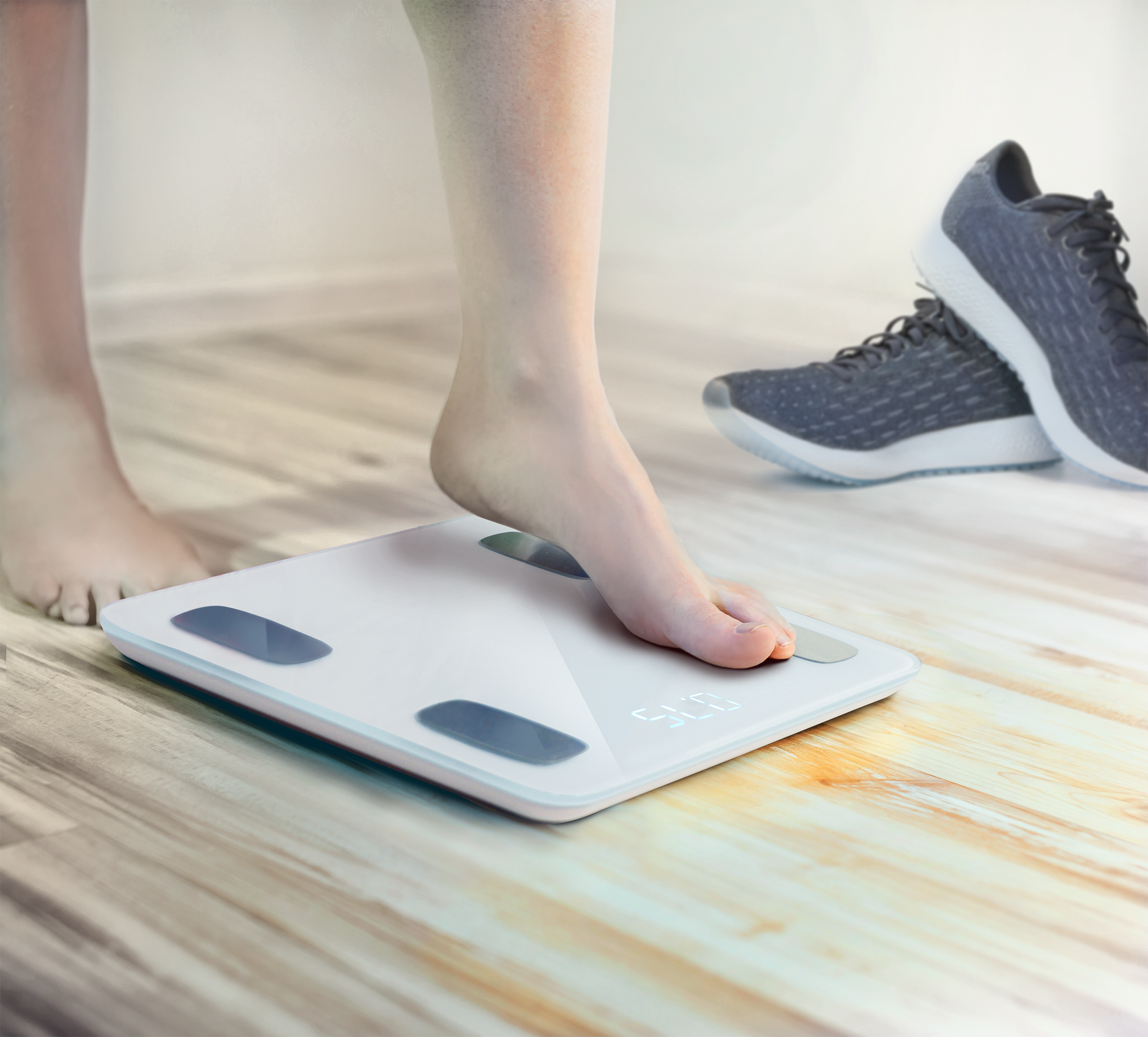 Balança de casa de banho com Bluetooth para medir gordura corporal.