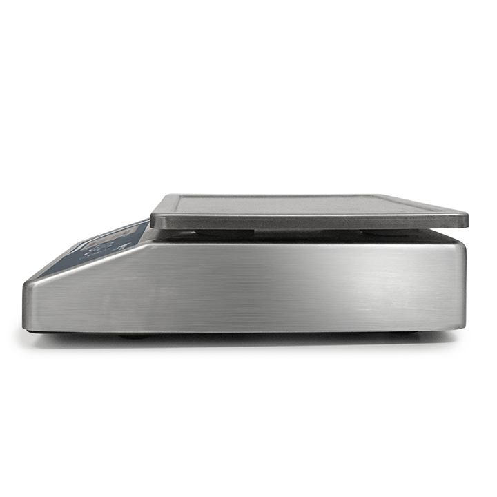 Balança compacta fabricada em aço inoxidável para pesagem versátil e precisa.